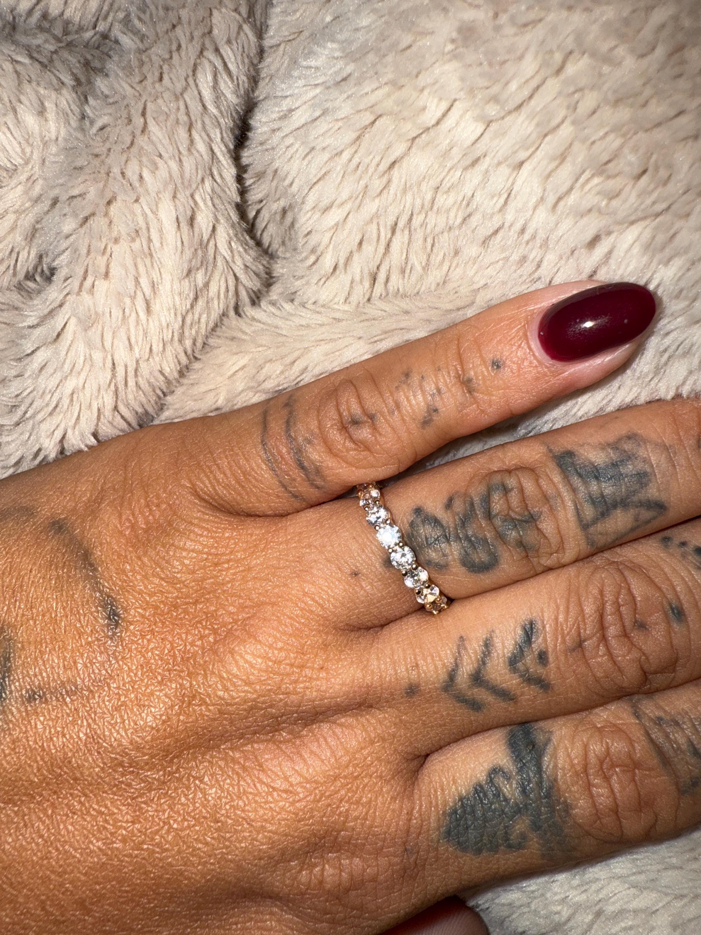 Designed with a 2.5mm band thickness, this ring offers both comfort and durability, making it ideal as a wedding band, anniversary ring, or stacking band. Its timeless sparkle makes it versatile enough to be worn alone or paired with an engagement ring.
