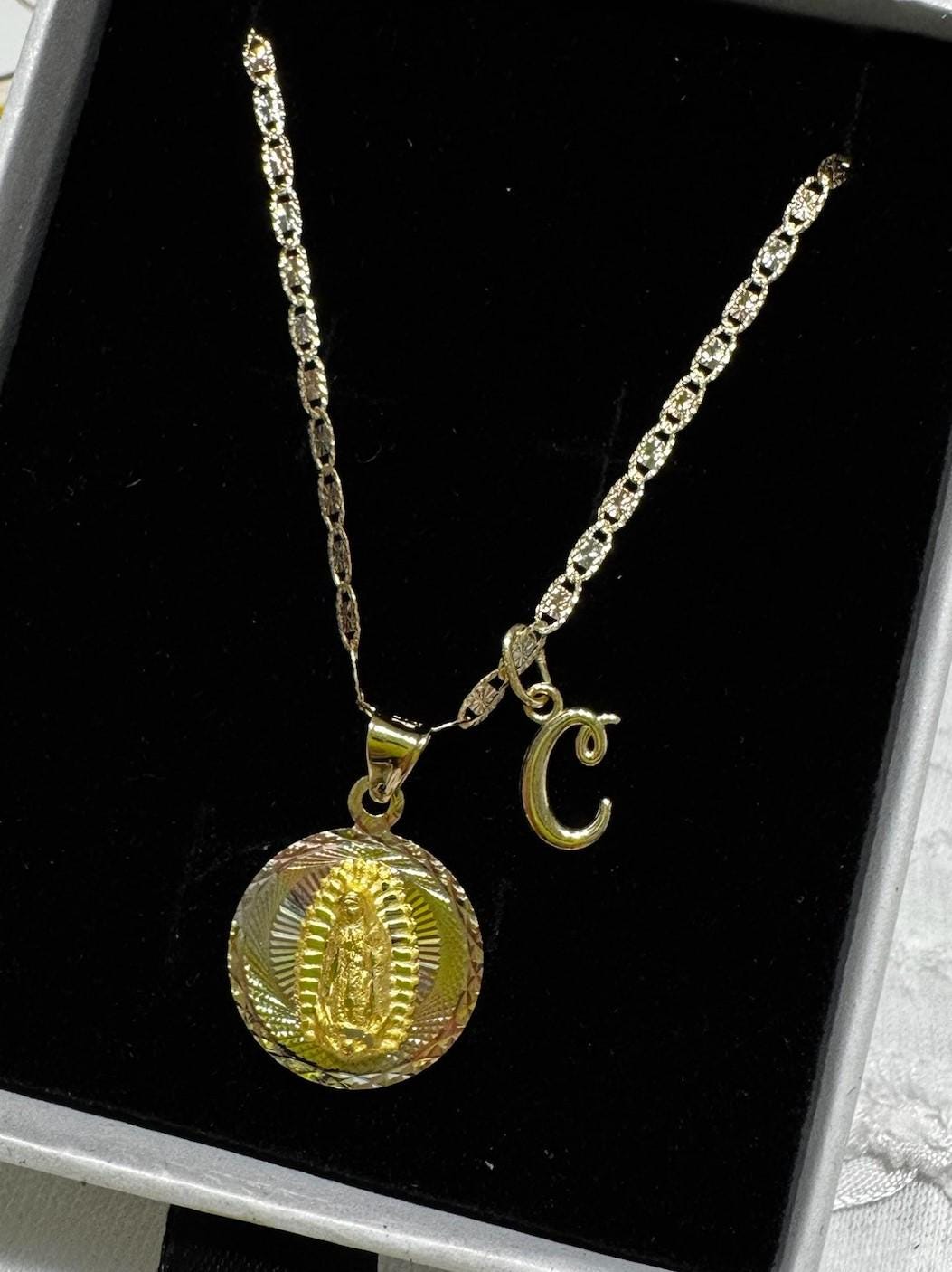 💎14K Solid Yellow Gold Reversible 2 in 1 Charm Pendant 14K Solid Gold Diamond Cut Guadalupe and Jesus Pendant S/L