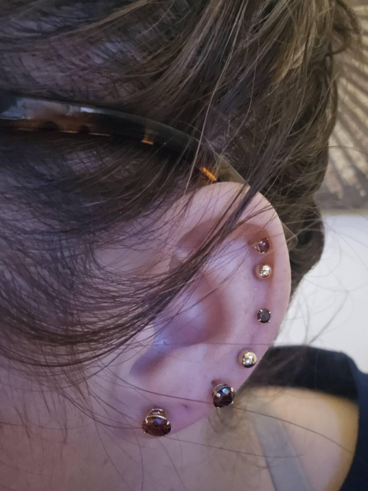 I absolutely love these earrings. The best part is how the backing screws in. My hair is long and tends to get caught on my earrings and end up pulling my earrings out and lose them. I have had the 1st set I bought in my ear for almost 2 years now and still haven't come out. Just bought another pair for the top of my ears.